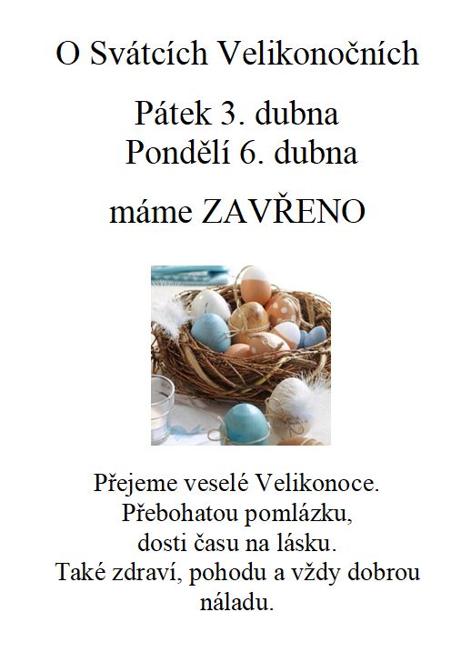 Přijďte si nakoupit v Sobotu 4.4. 8:00 - 12:00